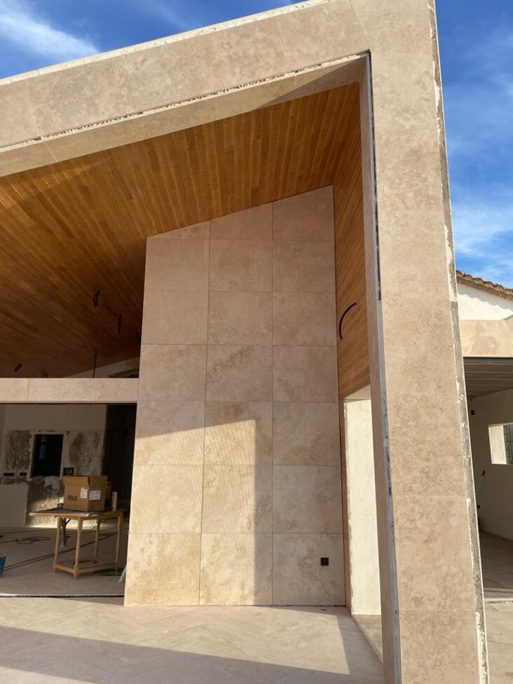 Realización de diseño y ejecución de la obra. Para el proyecto se han utilizado diversos travertinos para chapados, solados y diseño interior. Asimismo, los acabados han sido diversos: envejecidos, apomazados, rallados y arenados.